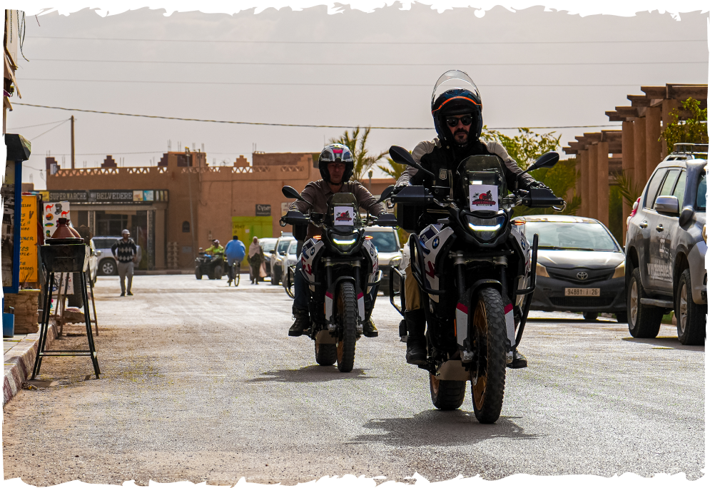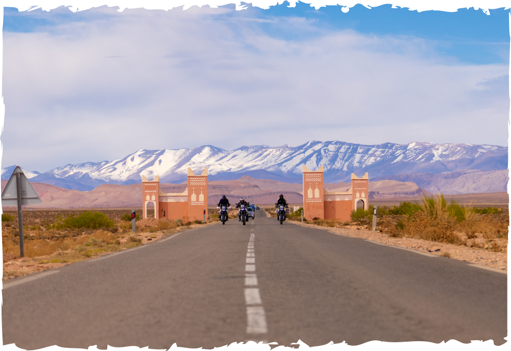 Leaving the Sahara behind, the route turns west through arid landscapes dotted with ancient kasbahs. One of the riding highlights is Todra Gorge, where towering canyon walls close in around the road, creating a dramatic and unforgettable stretch of tarmac.