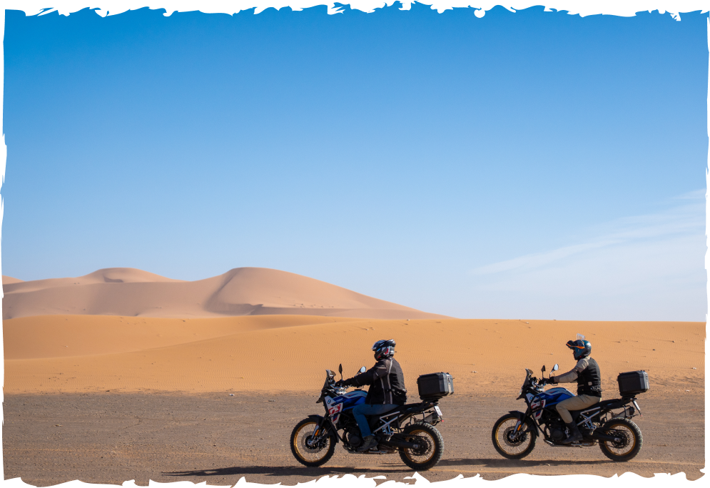 It’s moderate in difficulty but rich in reward — plenty of riding plus time off the bike to absorb Morocco’s culture, food, and history. Perfect for riders who want a full Morocco journey in one adventure.